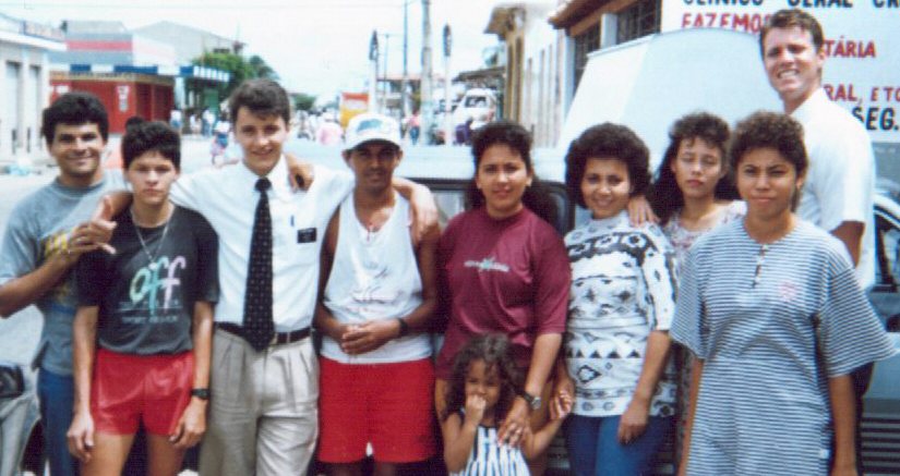 Here's the "turma" of Santos Dumont, Aracaju including Elders Libanio & Bench. August 1995.