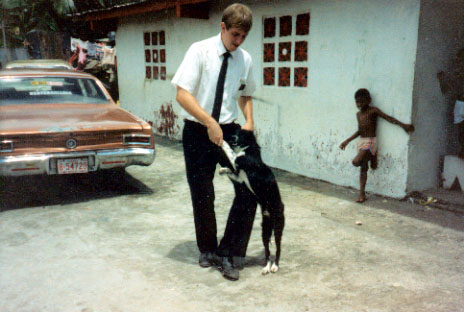 Pictures: Elder Grundberg playing with Blacky at the Mosquera Family
