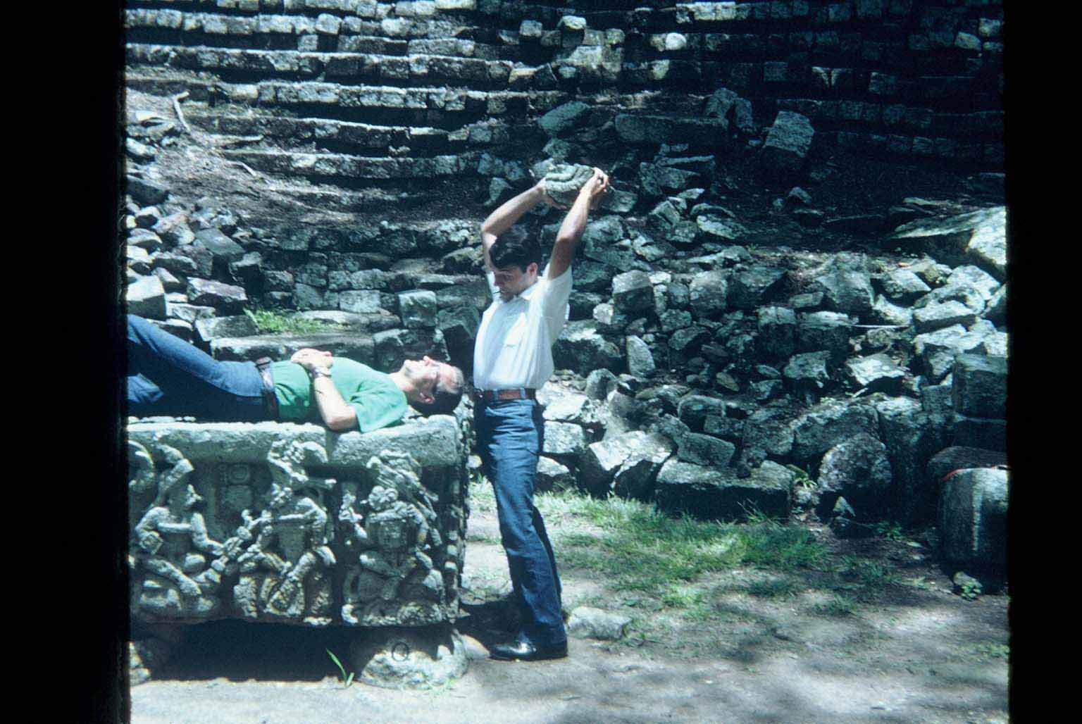 Hugo W. Gálvez B. Aqui ven a un lamanita sacrificando a su compañero nefita, Lo hicimos en Copan para que fuera mas autentico 12 Apr 2004