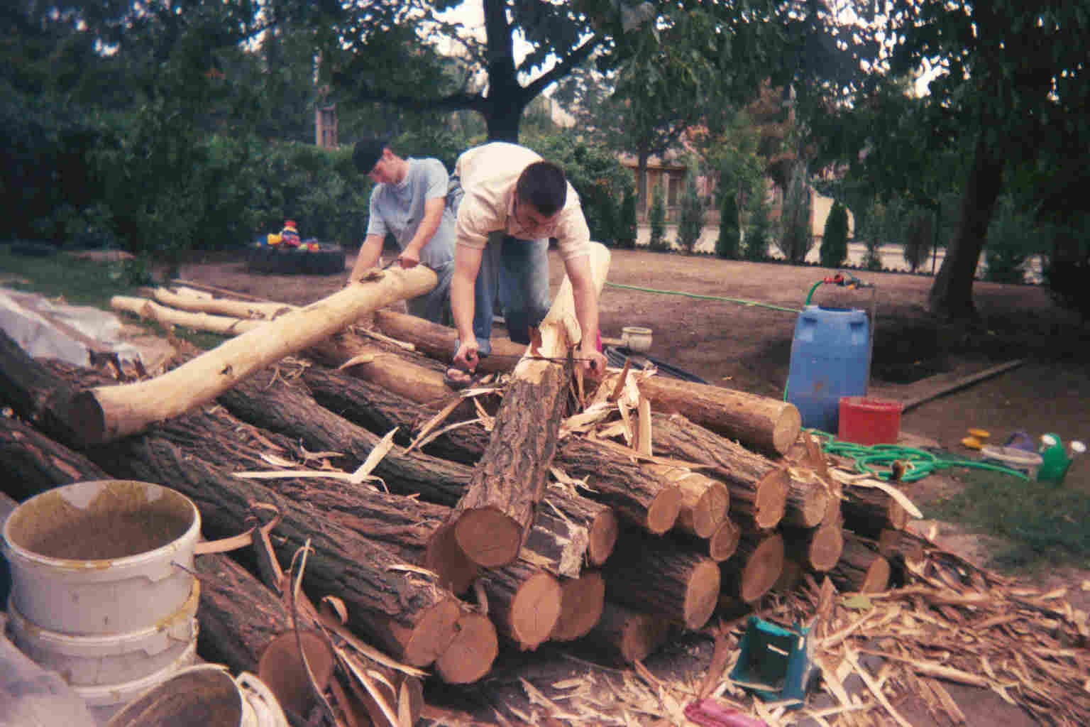 This is Elder Carson Workman and Elder Benjamin Wardle doing service for an investigator in Veszprém. Aug or Sept 2003