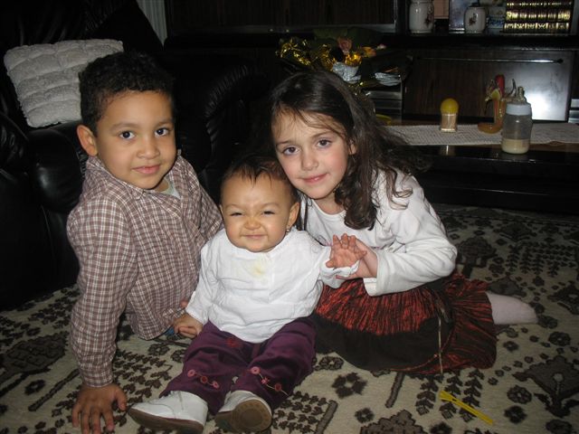 Timothée (9), Lucie (4) y Joachim (3 meses) se portan bien y estan todavia descubriendo su nueva vida.