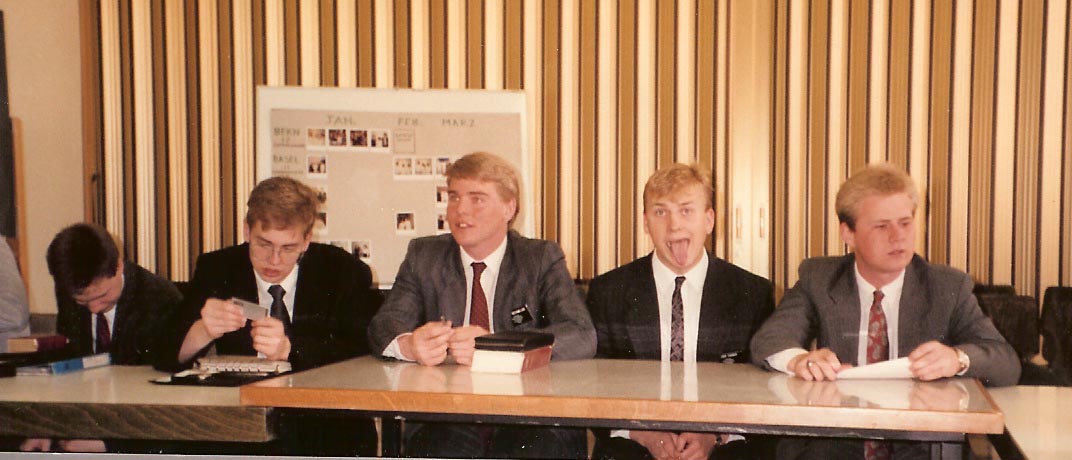 Elder Tanner is obviously the only one who understands the serious nature of the meeting.