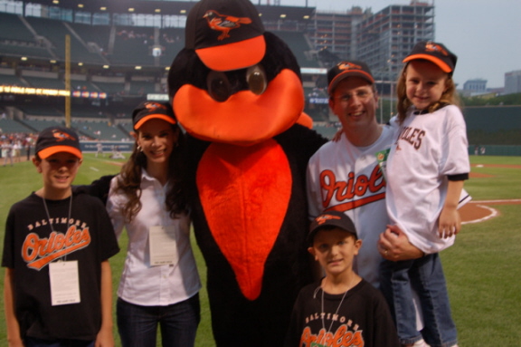 My wife, Camey, and I have four children: Clayton (11), Christian (9), Caroline (6) and Claire (3). This Fall, I threw out the first pitch at the Orioles game. The team let me bring my family (except the 3-year-old) onto the field. For all you baseball fans who are wondering...Yes, I threw a slider for a strike.