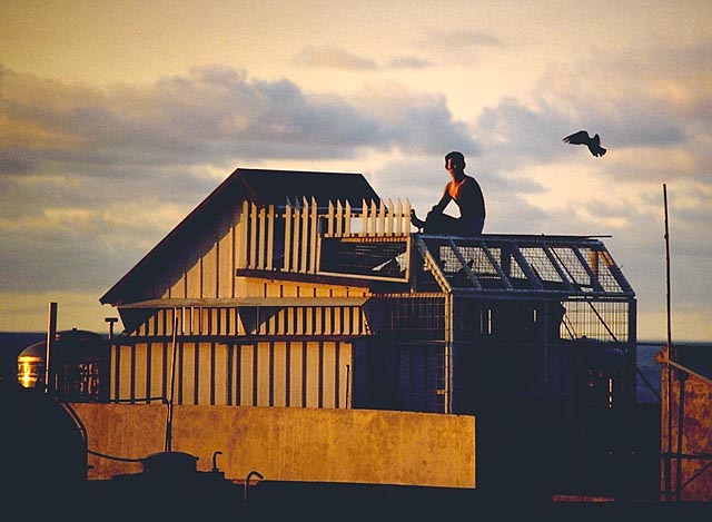 Kim Burton Ashby Man with homing pidgeons 14 Mar 2002