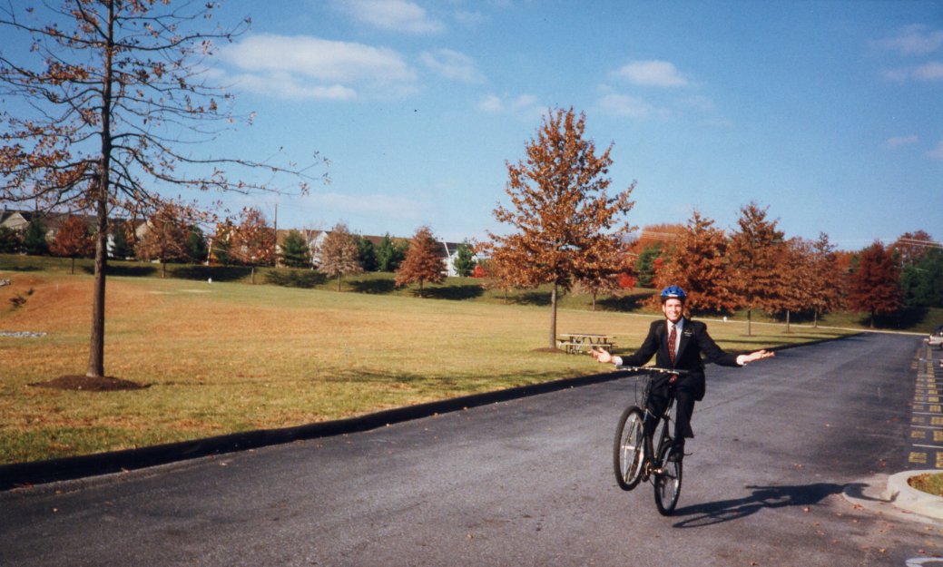 David Pabst Elder Muhlestein doing the sweet no-handed wheelie in front of the Mission Office! October 1998 26 Aug 2003